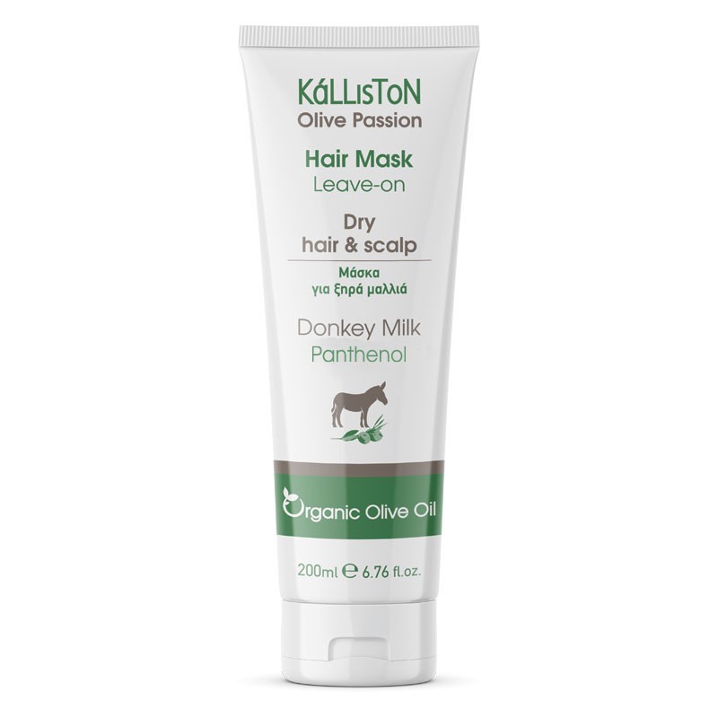 Μάσκα μαλλιών με γάλα γαϊδούρας και κρητικό βιολογικό ελαιόλαδο, πλούσια σε βιταμίνες, ιδανικές για ενυδάτωση και αναζωογόνηση του τριχωτού της κεφαλής και των μαλλιών. Περιέχει εκχύλισμα λάβας, το οποίο λόγω των μετάλλων και των ιχνοστοιχείων του αποτοξινώνει και καταπραΰνει το τριχωτό της κεφαλής, καθώς και προβιταμίνη Β5 (πανθενόλη) για ενυδάτωση και προστασία του χρώματος των μαλλιών. Με μαλακτικούς παράγοντες που σχηματίζουν ένα προστατευτικό φίλμ και συμβάλλουν στην ενδυνάμωση των μαλλιών, προσφέροντας απαλότητα και λάμψη./Hair mask with donkey milk and organic (bio) olive oil, rich in vitamins, ideal for moisturizing and rejuvenating the scalp and hair. Contains lava extract, which due to its minerals and trace elements detoxifies and soothes the scalp, as well as provitamin B5 (panthenol) for hydration and hair color protection. With emollients that form a protective film and contribute to hair strengthening, offering softness and shine.