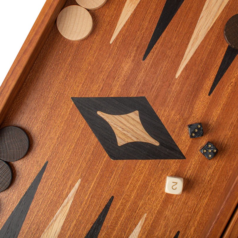 - Μοναδική επένδυση από μαόνι: Κάθε ταμπλό τάβλι είναι μοναδικό, χωρίς δύο σετ ακριβώς ίδια.