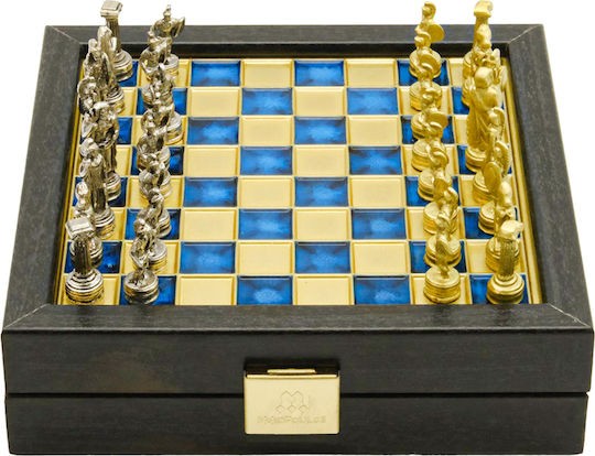 Σετ σκάκι με μεταλλικά πιόνια και μπρούτζινη σκακιέρα