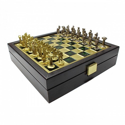 Σετ σκάκι με μεταλλικά πιόνια και μπρούτζινη σκακιέρα